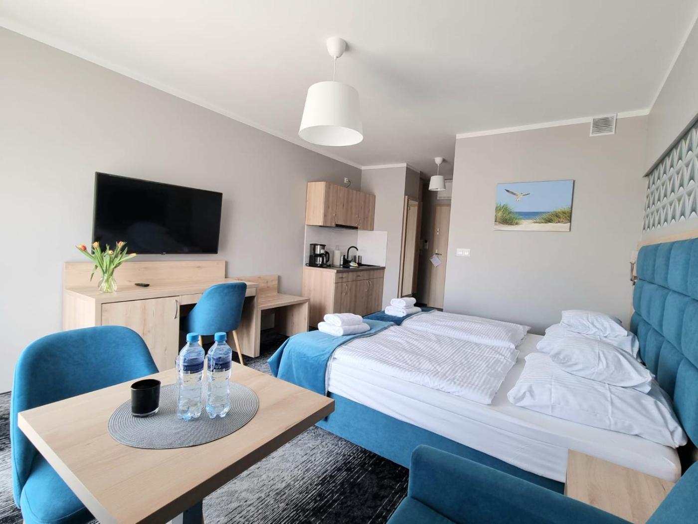 W apartamencie do dyspozycji gości przygotowano sypialnię (1) oraz aneks kuchenny. Wyposażenie obejmuje też telewizor z płaskim ekranem.